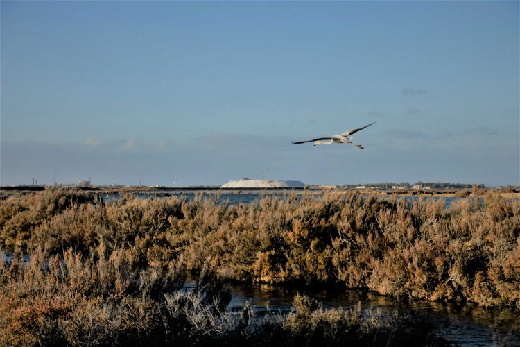 Antes de llegar a la zona de vida silvestre, tanto del lado uno como del otro, ven imponer los innumerables tanques de sal y las impresionantes colinas de sal.