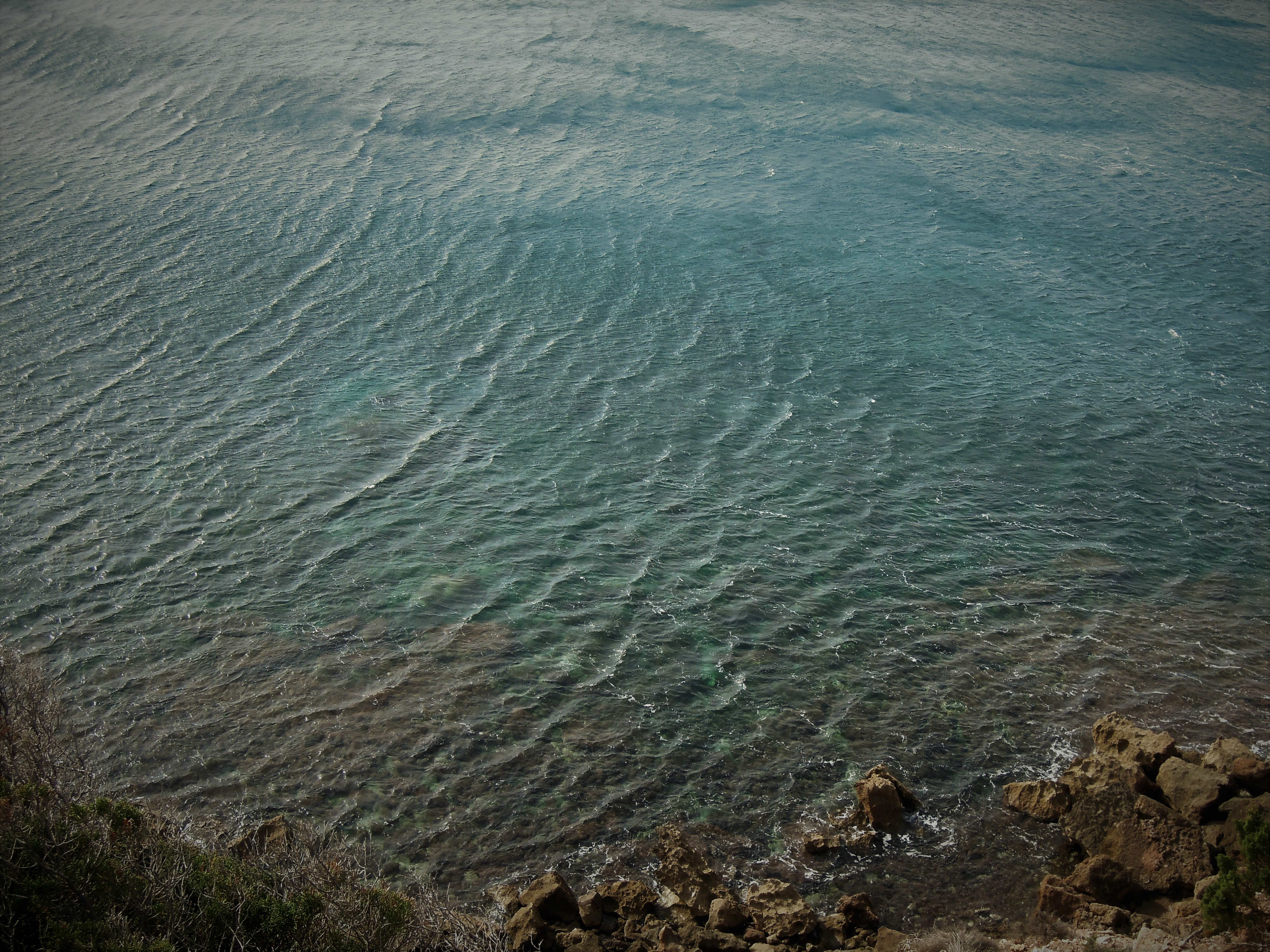 Una volta superato il senso di stordimento, abbiamo cominciato la salita lungo il sentiero stretto che fiancheggia la costa e man mano che salivamo cominciava lo spettacolo alle nostre spalle: il mare, con tutte le gradazioni del blu, sembrava di velluto; mosso dal vento, non formava onde definite, ma sollevava una leggera spuma bianca che correva lungo la superficie; la vegetazione di color verde intenso si interrompeva improvvisamente per dare spazio alle rocce bianche degli scogli.